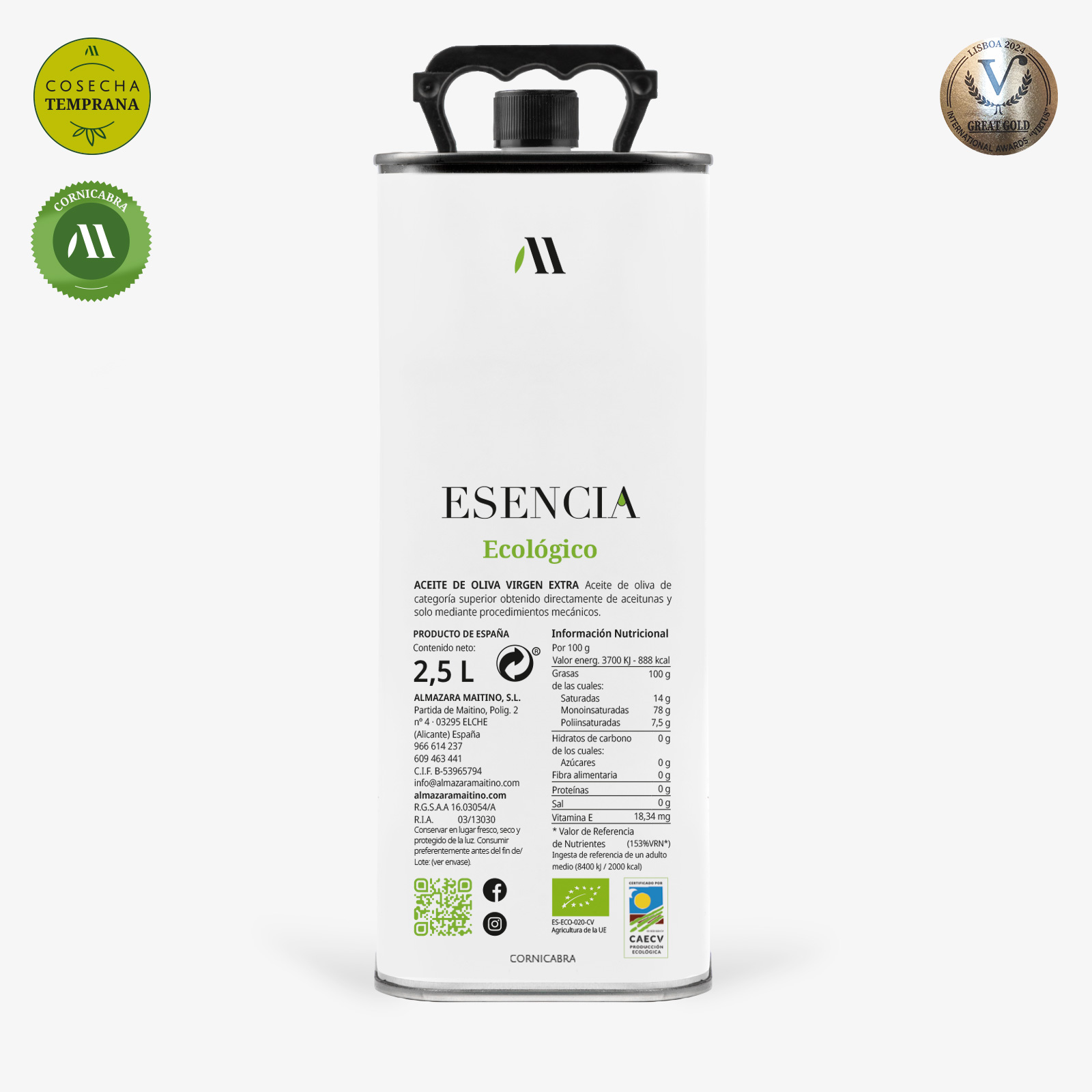 ELABORACIÓN: Aceite de Oliva Virgen Extra Ecolégico elaborado con aceitunas Cornicabra seleccionadas y recolectadas en la primera quincena de octubre. Prensado en frio para conservar todos sus matices naturales.